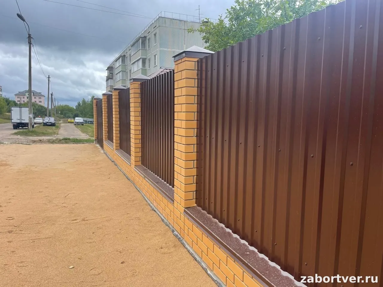 Монументальное и статусное ограждение на ленточном фундаменте, сочетающее надежность кирпичной кладки с эстетикой современного наполнения. Такой забор не только обеспечит максимальную безопасность, но и станет главным украшением фасада вашего участка.