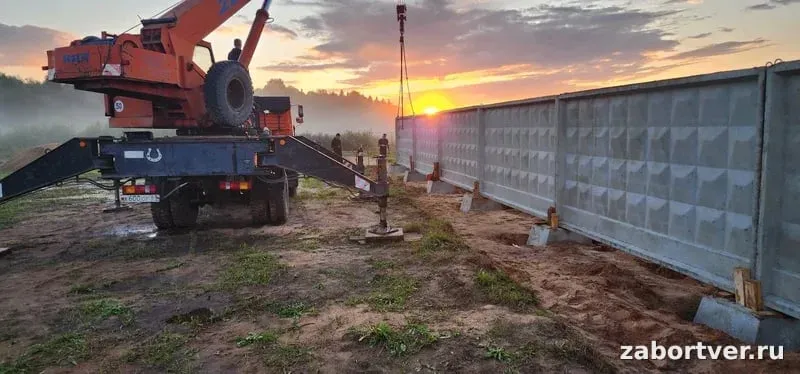 Монтаж секционного железобетонного забора ПО-2 с применением спецтехники