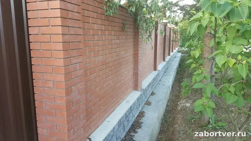 Монументальный кирпичный забор с цоколем из камня: Классика и Надежность