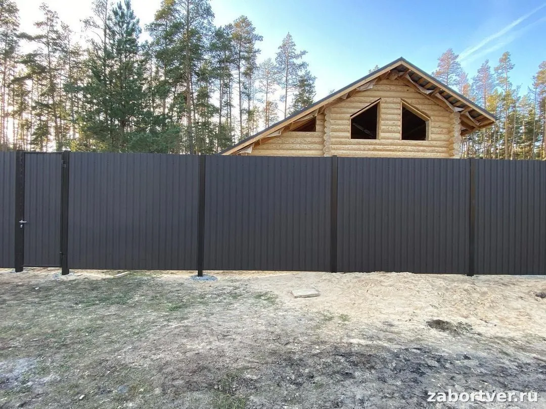 Современный забор из профнастила «Антрацит» с автоматической въездной группой